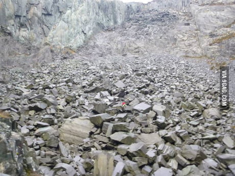 Was hiking in Wales, a very small part of an old abandoned Quarry. I'm the red thing.