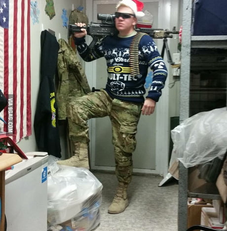 He's overseas for Christmas but that can't stop his FO4 spirit.