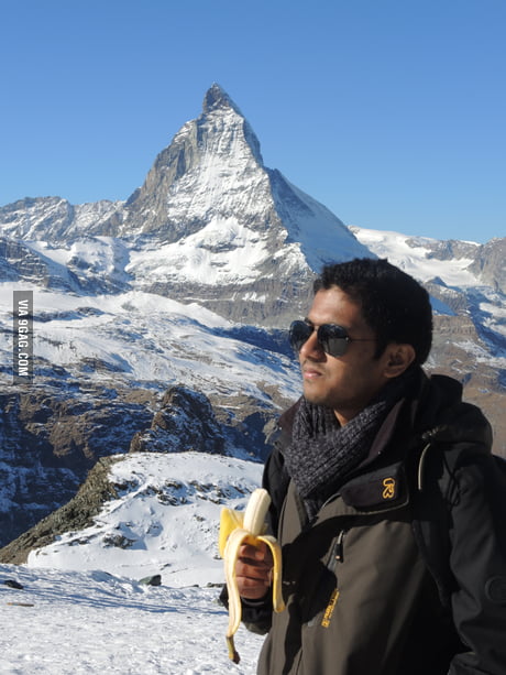 With a lot of people taking Toblerone pics at the Matterhorn, here is me representing 9GAG with a banana!